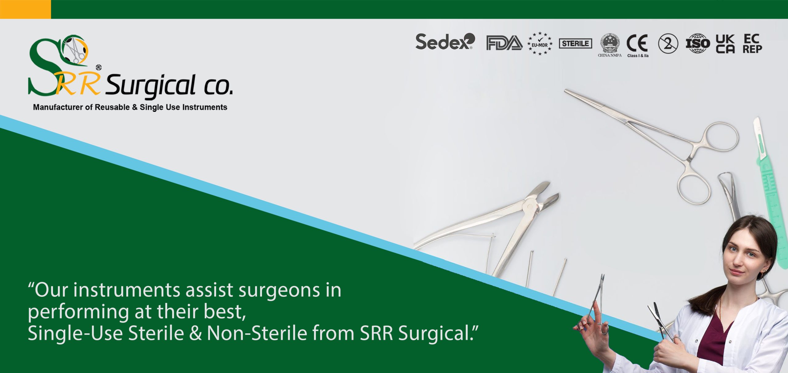 “Our instruments assist surgeons in performing at their best — Single-Use Sterile & Non-Sterile from SRR Surgical.”